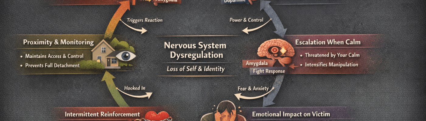 This explains why even after separation, many survivors feel “on edge” or hyper-aware” — their nervous system has adapted to years of dysregulation.