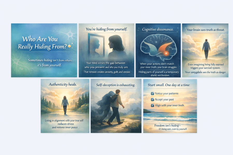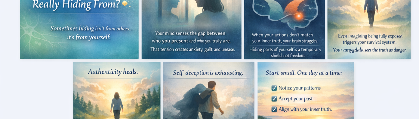 Hiding your true self is rarely about others — it’s your brain and mind trying to protect you from judgment, rejection, or internal conflict. True growth happens when you start to safely explore and accept who you are, reducing the need for these protective “masks.”