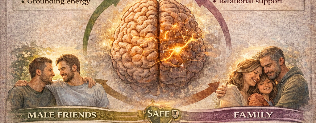 - Male friends may provide logical advice, protective energy, or perspective that feels grounding.